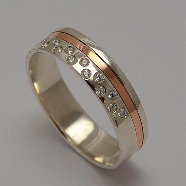 Alianzas de Plata 925 y Oro 18klts con 12 Circonias de 2mm engarzadas a mano. Disponible en oro amarillo o rosado.